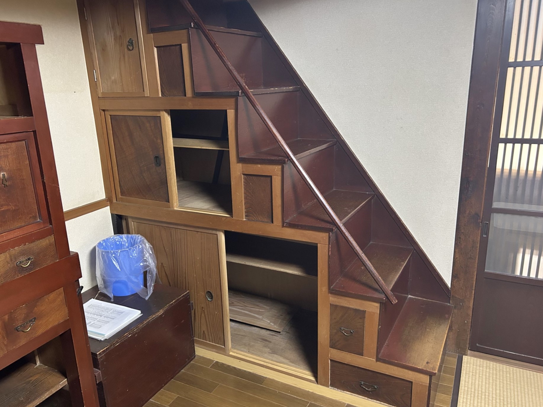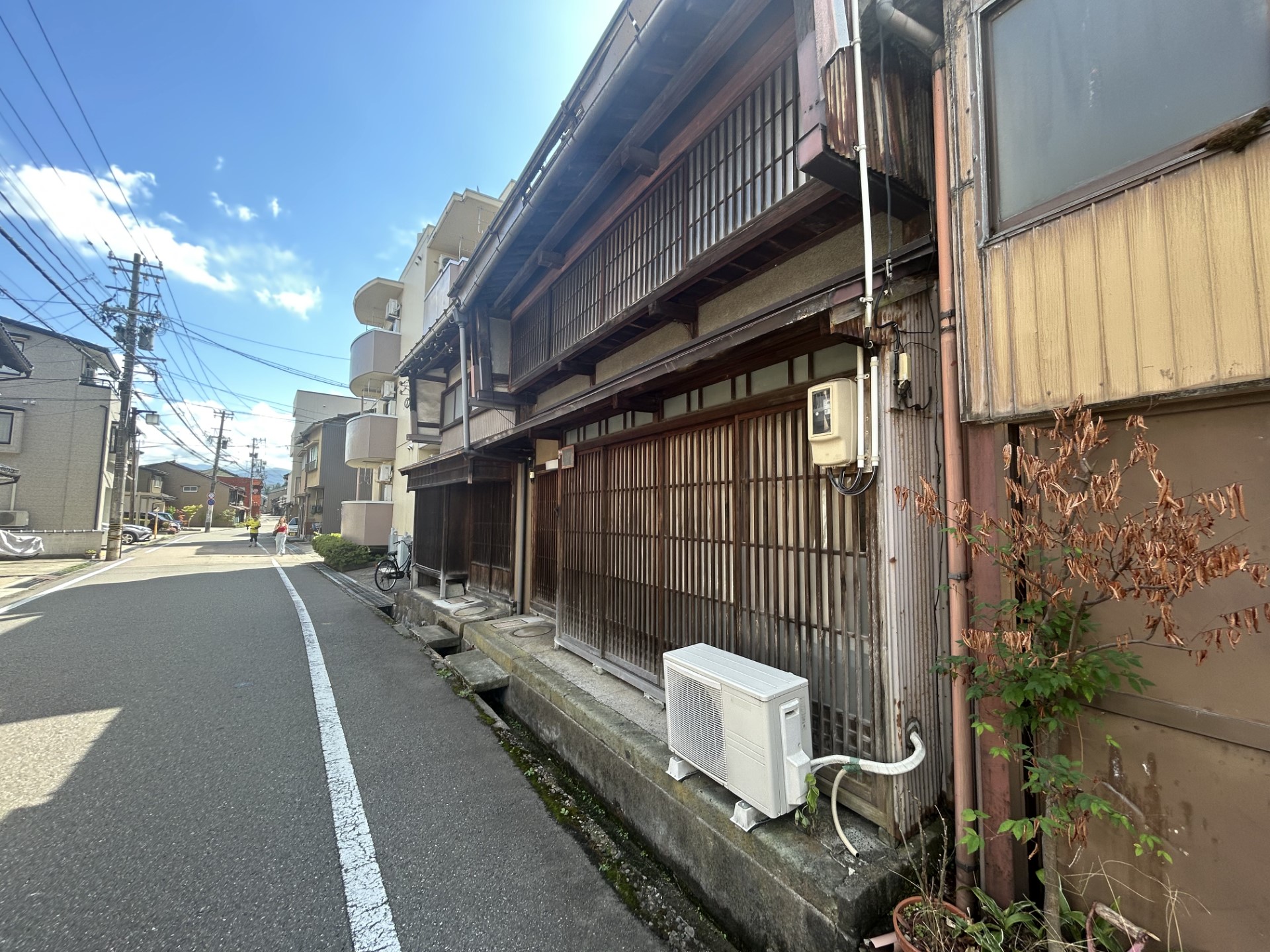 This property consists of two adjoining machiya, originally thought to have been separate homes. Both are traditional wooden buildings, with the larger right-hand structure believed to date back to the early 19th century during the feudal era. Located in Kanazawa’s preserved historic district of Tenjinmachi—an old post-town area along the route toward southern Toyama—the neighborhood is calm and lined with historic architecture. The property is within walking distance of Kanazawa Castle, Kenrokuen Garden, and the scenic Asano River, and is about 25 minutes by bus from Kanazawa Station.