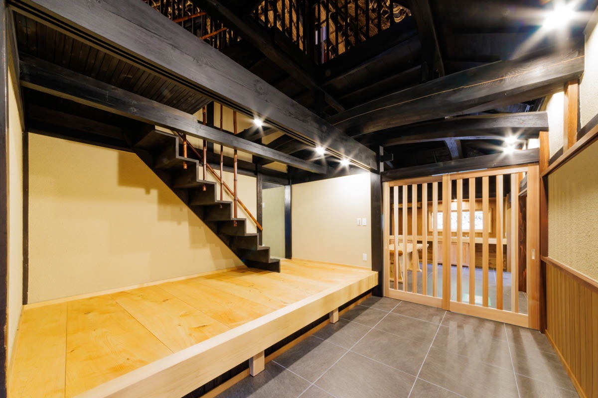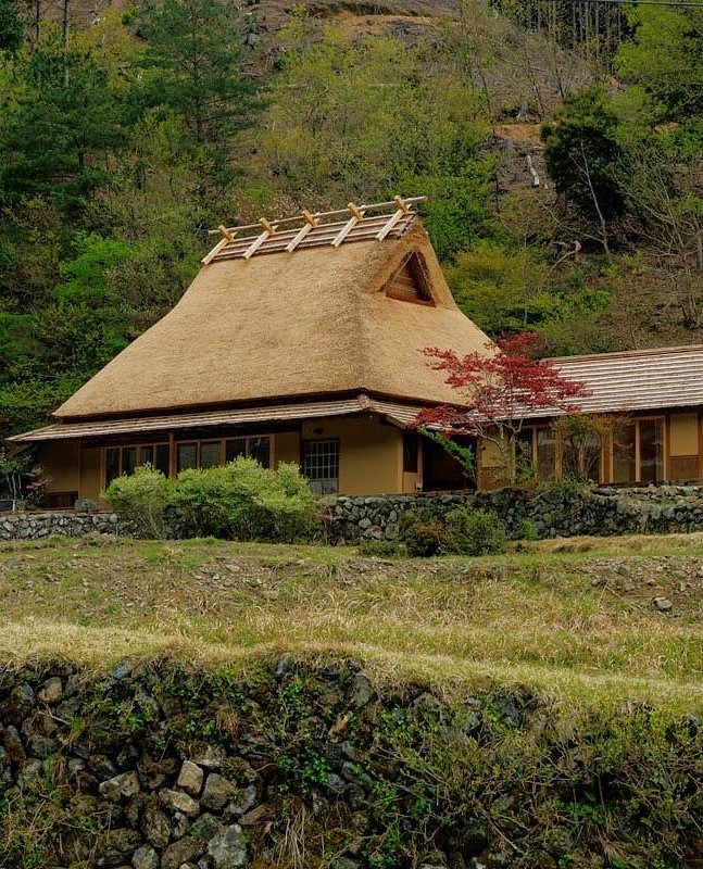 Located about an hour and a half northwest of central Kyoto, this impressive thatched farmhouse with a traditional irimoya roof sits quietly in the mountains of western Miyama. With ample distance from neighboring homes and a satoyama landscape as its backdrop, it embodies the classic image of rural Japan. Unlike the busy tourist area of “Miyama Kayabuki no Sato,” this property lies farther up a valley along a tributary of the Yura River, offering a peaceful setting with little tourist activity.