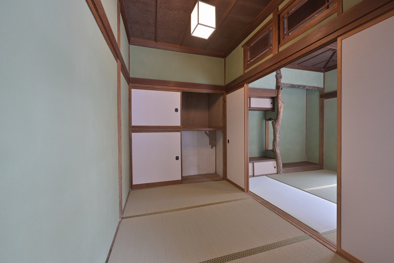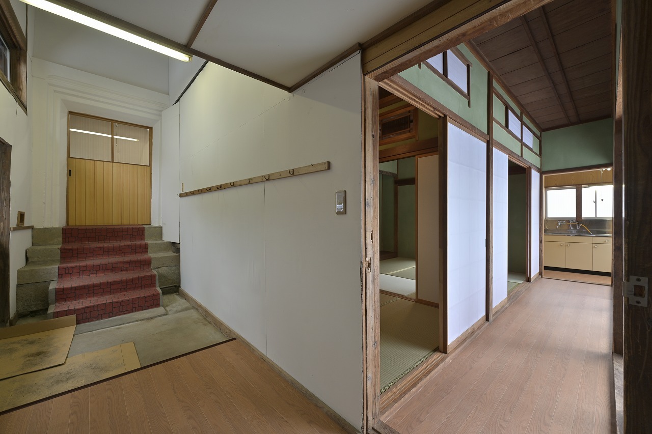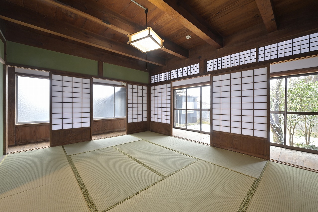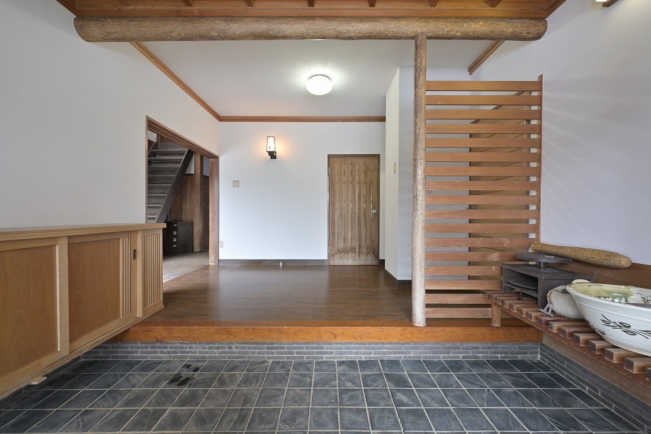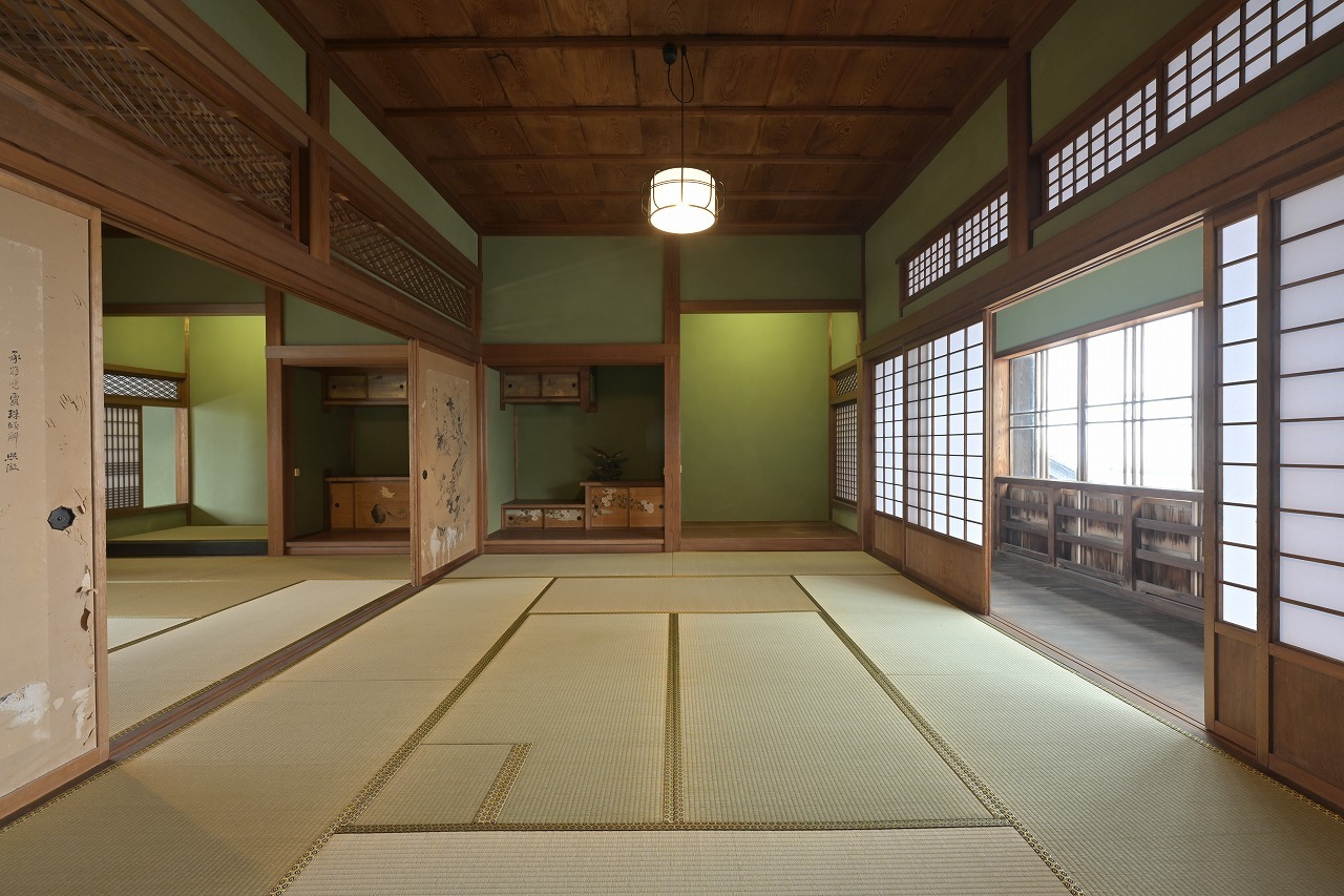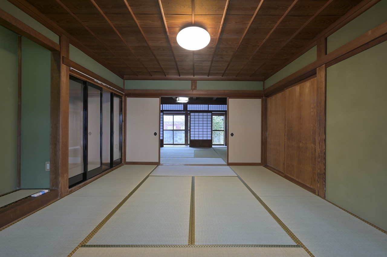 Sanjo City, in central Niigata Prefecture, is a leading metal processing hub alongside neighboring Tsubame City, with suburbs known for fertile fields and delicious local produce. This fully renovated Kominka, including the main house, detached structures, and Kura storehouses, sits at the edge of the Tsuruda settlement, offering a serene yet convenient setting. The property includes multiple Kura and a reservoir, suggesting it may have belonged to a prominent local family. Buildings are spread across a large plot and connected by covered walkways, allowing easy movement in any weather, while the Kura are enclosed by separate walls for preservation. One storehouse has been transformed into a spacious Western-style room with high ceilings, ideal for a dance or music studio thanks to its thick walls. The property is close to Sanjo city center and just 40 minutes from Niigata Shinkansen Station.