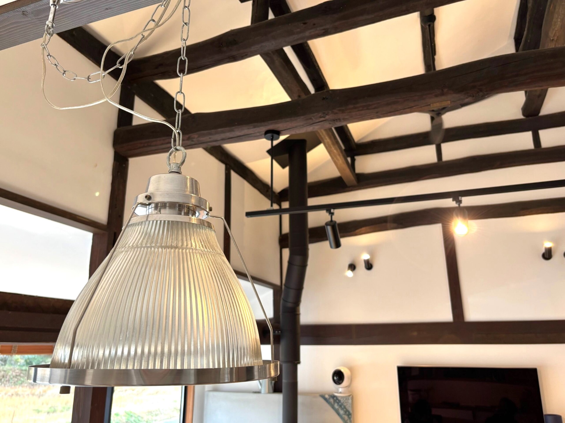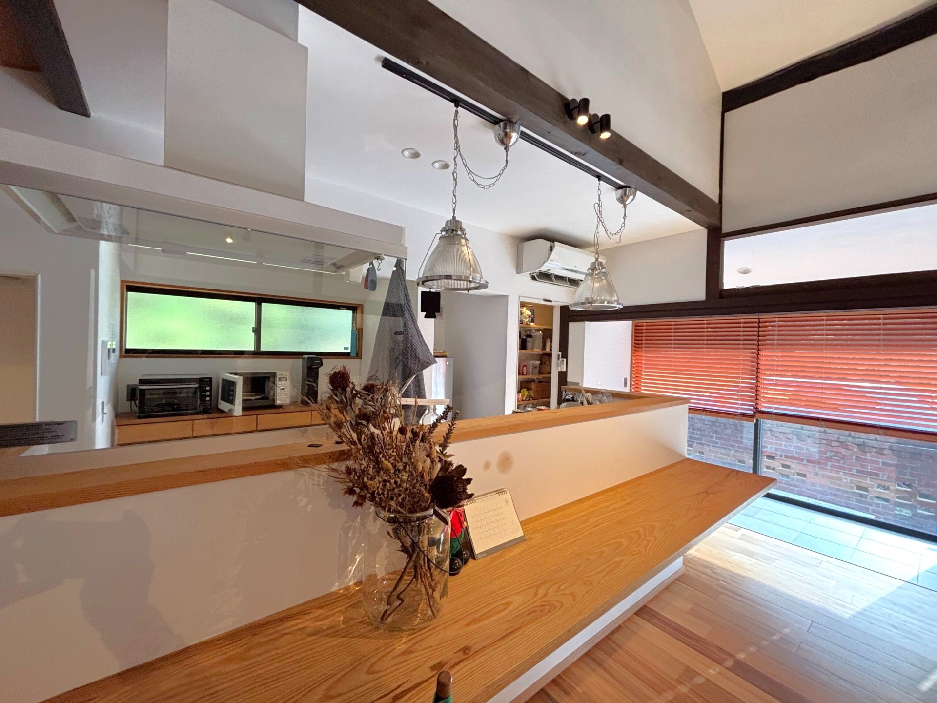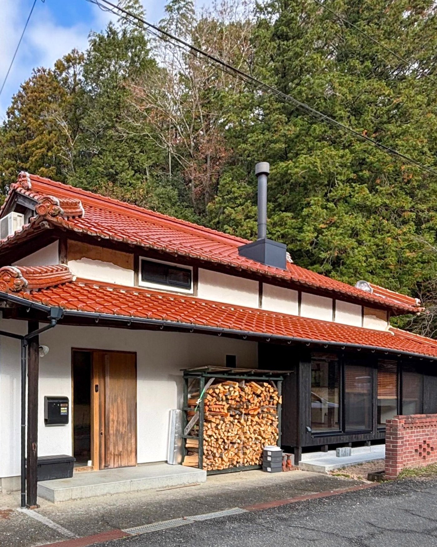This kominka is located in Sanyo-Onoda City, Yamaguchi Prefecture, on the Seto Inland Sea side of western Japan. It features distinctive red and durable Sekishu tiles, with a chimney rising from the roof and stacked brick walls that create a warm, inviting character. Rare for a traditional house, the chimney serves a wood-burning stove that heats a high-ceilinged living room with exposed old beams. The interior has been thoroughly renovated in recent years, offering comfortable country living suited to a modern lifestyle. The narrow lane in front of the house is part of the ancient Sanyo Road, once a major route linking Kyushu with Kyoto and Nara. The area known as Nanoka-machi has long been a historic trading hub, and while now peaceful, it offers good everyday convenience, with Asa Shinkansen Station and schools within walking distance.