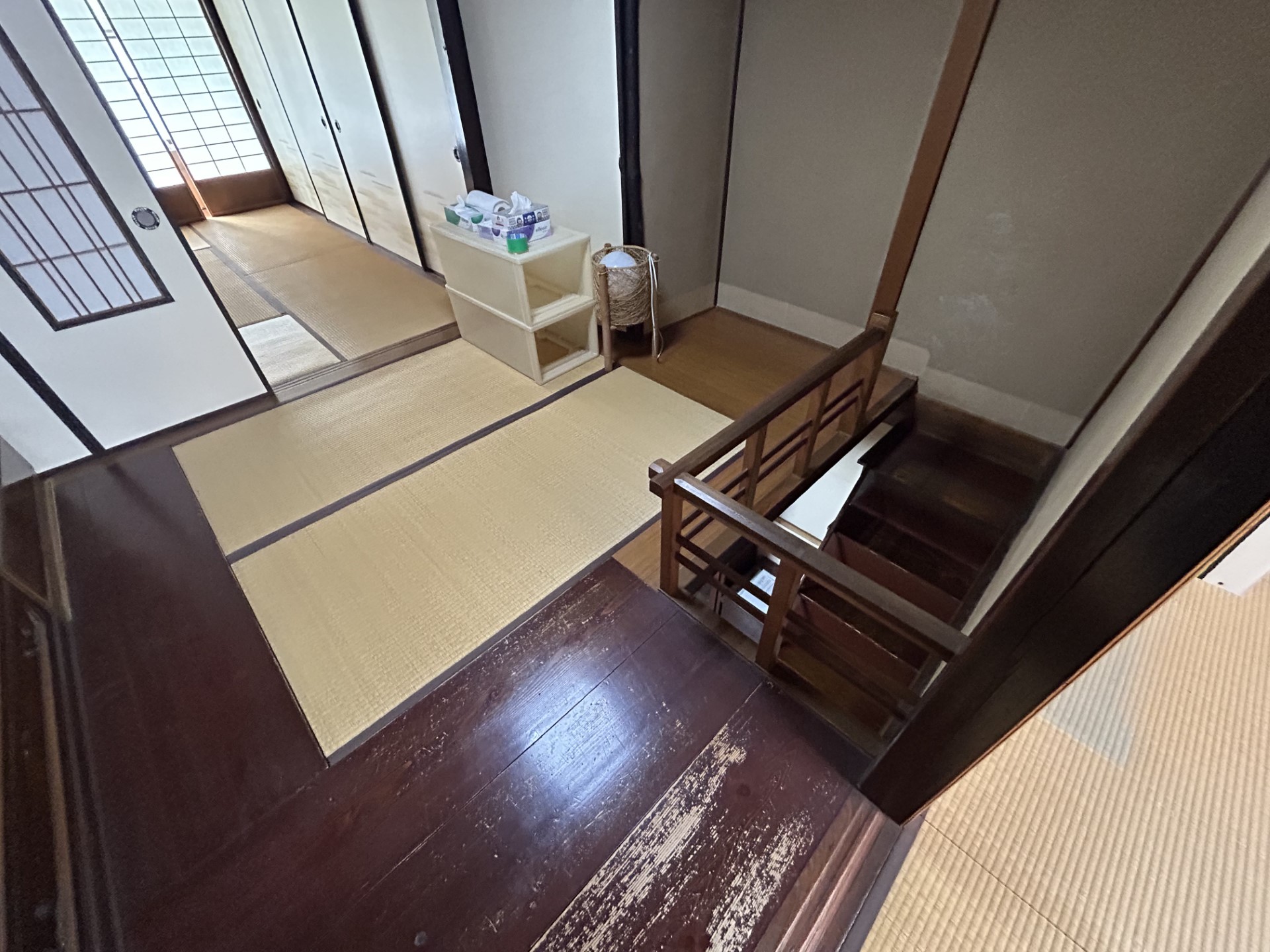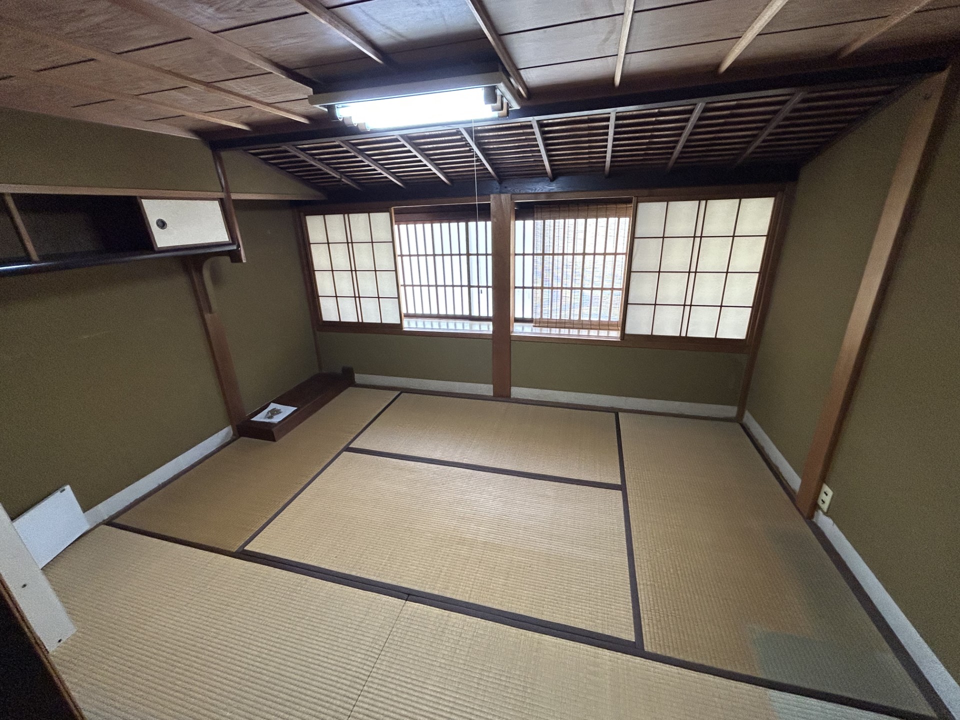 This property consists of two adjoining machiya, originally thought to have been separate homes. Both are traditional wooden buildings, with the larger right-hand structure believed to date back to the early 19th century during the feudal era. Located in Kanazawa’s preserved historic district of Tenjinmachi—an old post-town area along the route toward southern Toyama—the neighborhood is calm and lined with historic architecture. The property is within walking distance of Kanazawa Castle, Kenrokuen Garden, and the scenic Asano River, and is about 25 minutes by bus from Kanazawa Station.