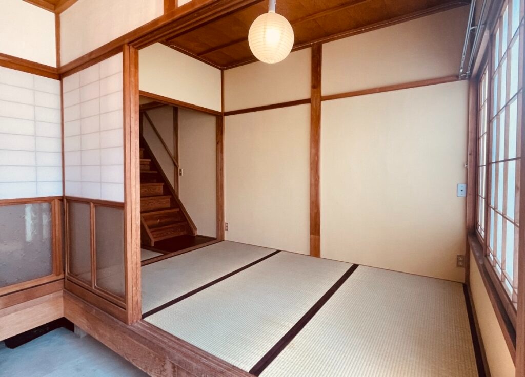 Although its narrow frontage makes it look small at first, this Minka (built 1988) extends 30 meters deep. Rooms lining the earthen-floored corridor capture the spirit of a traditional Machiya. Already in livable condition, the home offers ample storage and gently sloping stairs. Set in the heart of Kumihama, the property is surrounded by shops and restaurants, all within an easy stroll for comfortable daily living. Just steps from the calm, scenic Kumihama Bay, the property is also close to hot springs and a swimming beach. By car, Kinosaki Onsen and Amanohashidate are within an hour, and downtown Kyoto is two hours away.