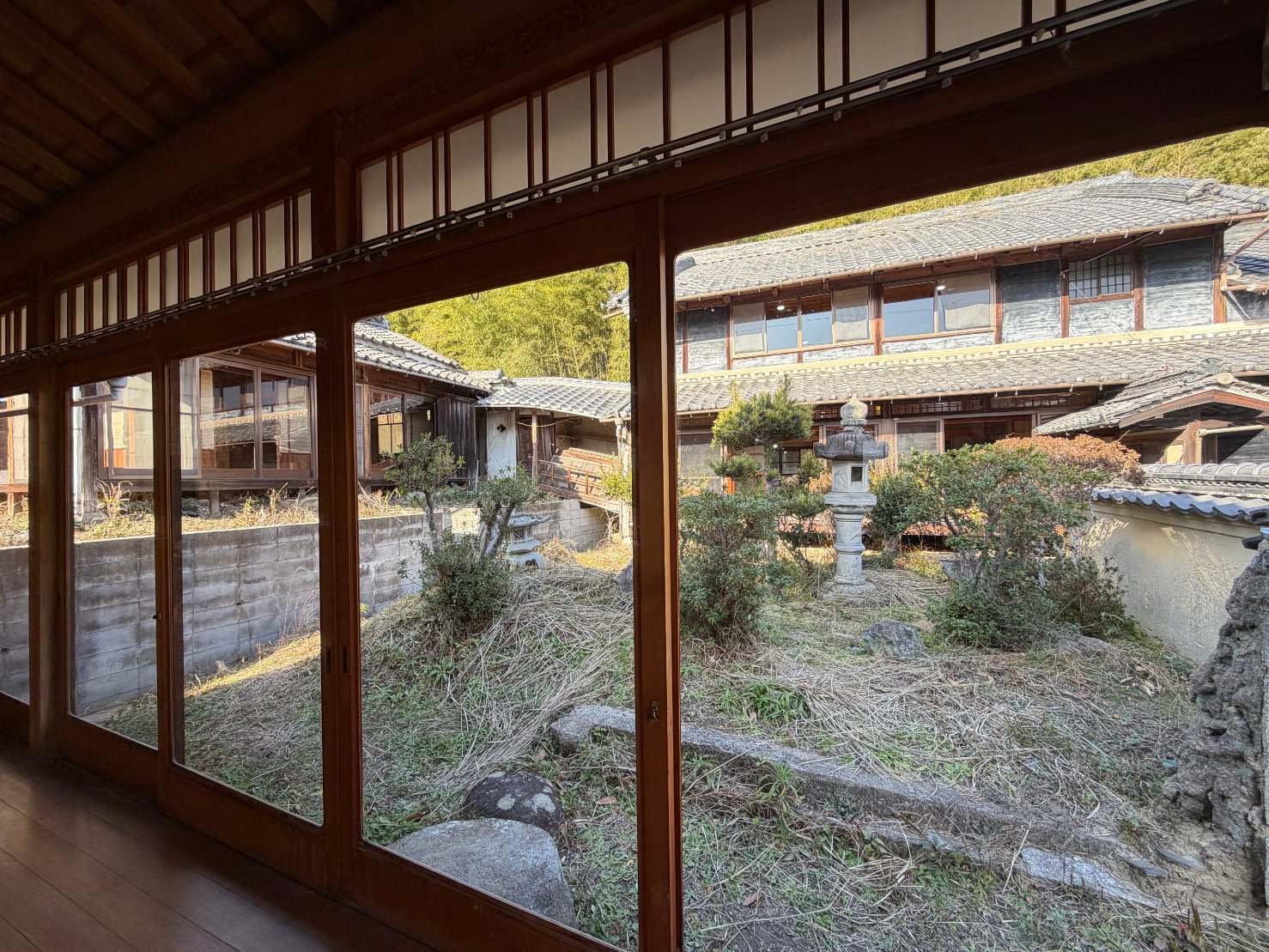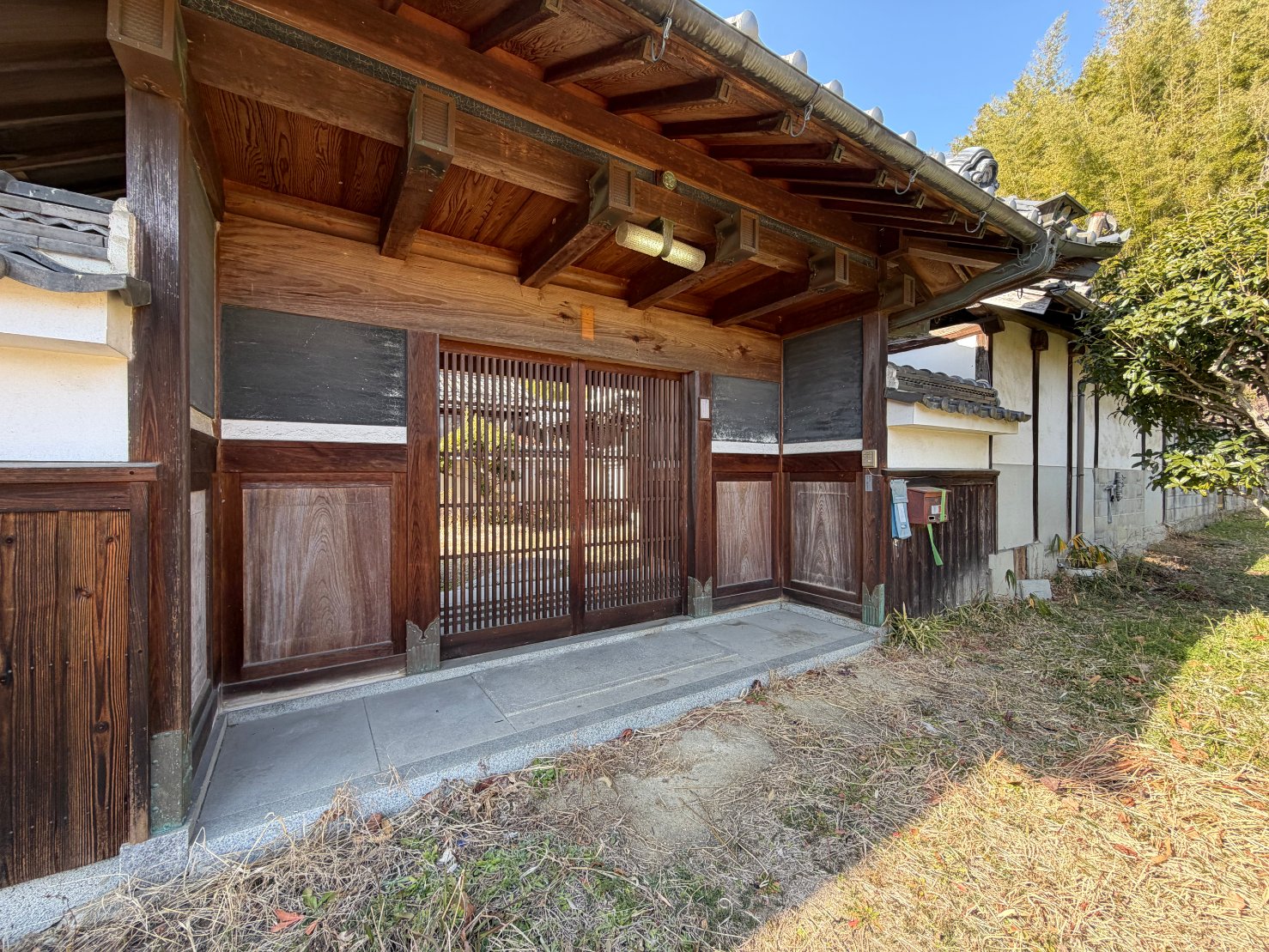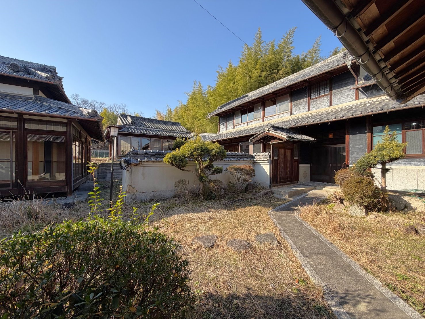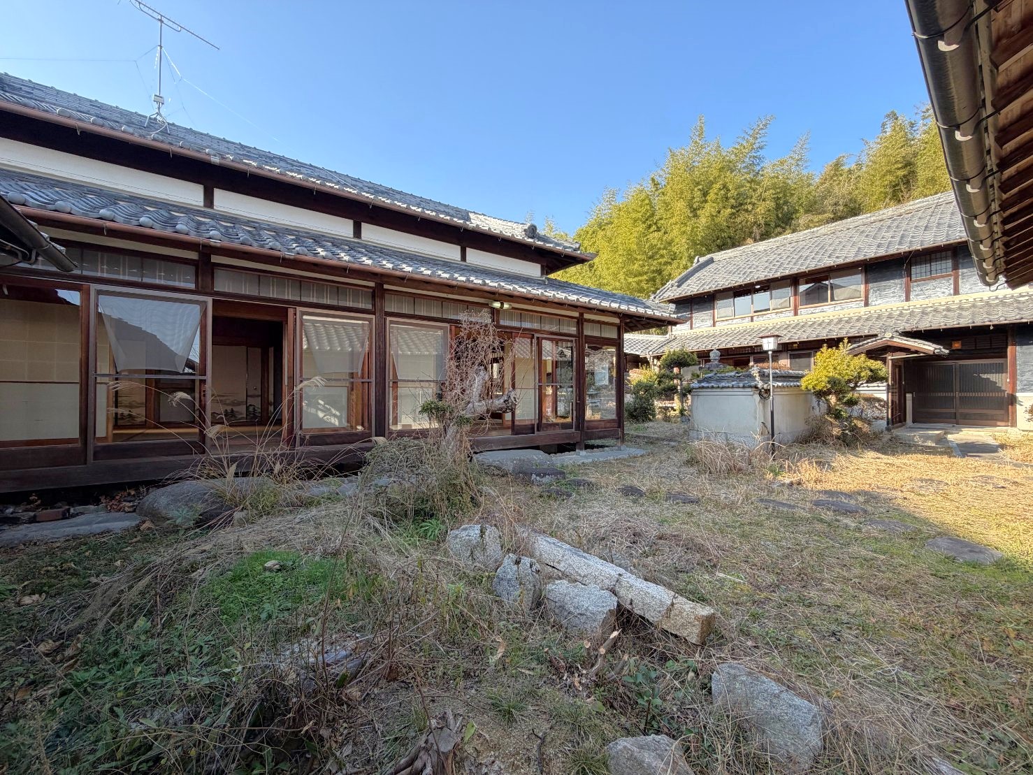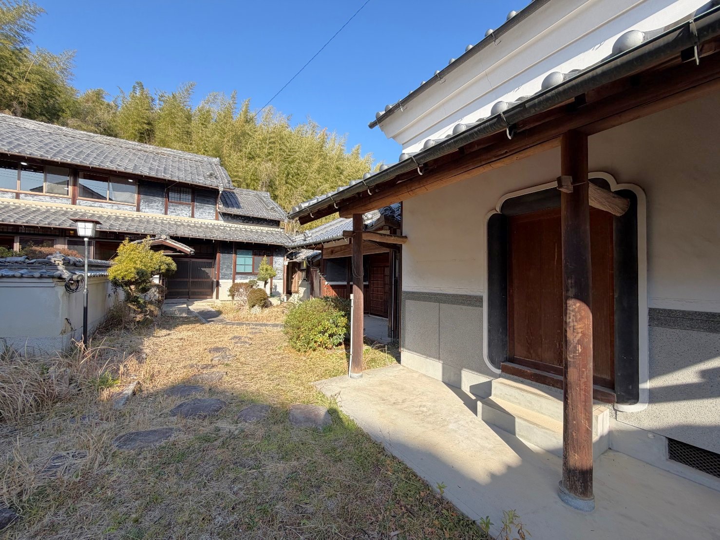 Kanmaki Town sits on expansive hills in the northwestern Nara Basin, an area rich in history with numerous ancient burial mounds reflecting its role in early Japan. While much of the hills has developed into a bedroom community for the Osaka metropolitan area, tranquil scenery of bamboo groves, woodlands, rice fields, and ponds still remains. This impressive kominka with a stately gate stands on a generous plot at the edge of an old village. Traditional buildings arranged around an inner courtyard create an elegant atmosphere. A short walk leads to a newer residential area with shops and daily amenities, allowing residents to enjoy both suburban calm and urban convenience. Nara and central Osaka are just over 30 minutes by car, and Kansai International Airport is under an hour away.