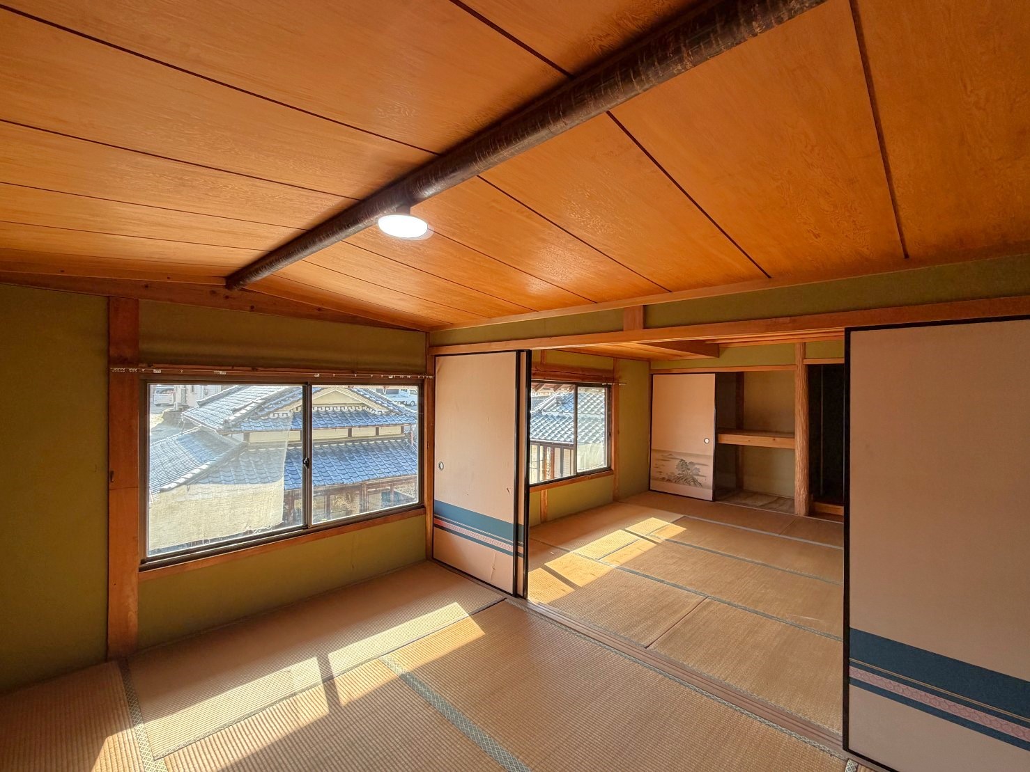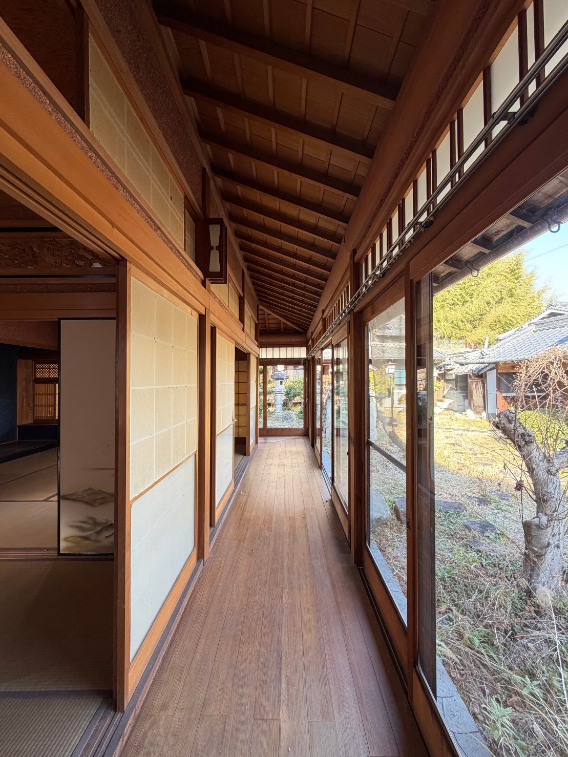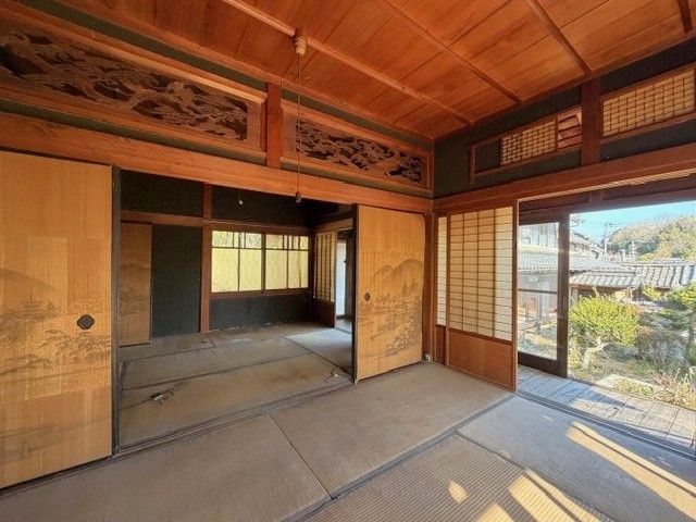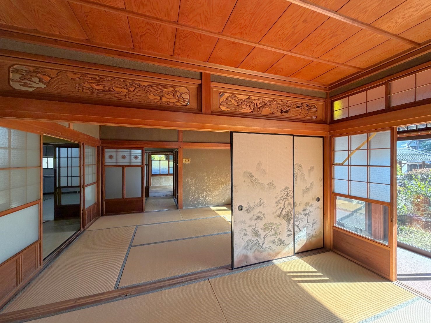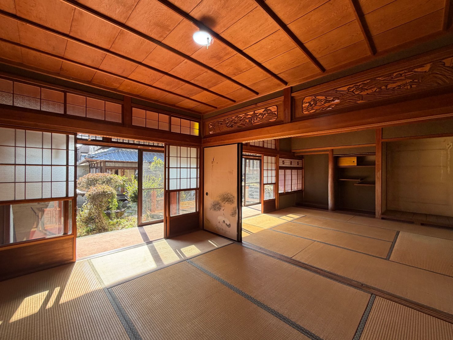 Kanmaki Town sits on expansive hills in the northwestern Nara Basin, an area rich in history with numerous ancient burial mounds reflecting its role in early Japan. While much of the hills has developed into a bedroom community for the Osaka metropolitan area, tranquil scenery of bamboo groves, woodlands, rice fields, and ponds still remains. This impressive kominka with a stately gate stands on a generous plot at the edge of an old village. Traditional buildings arranged around an inner courtyard create an elegant atmosphere. A short walk leads to a newer residential area with shops and daily amenities, allowing residents to enjoy both suburban calm and urban convenience. Nara and central Osaka are just over 30 minutes by car, and Kansai International Airport is under an hour away.