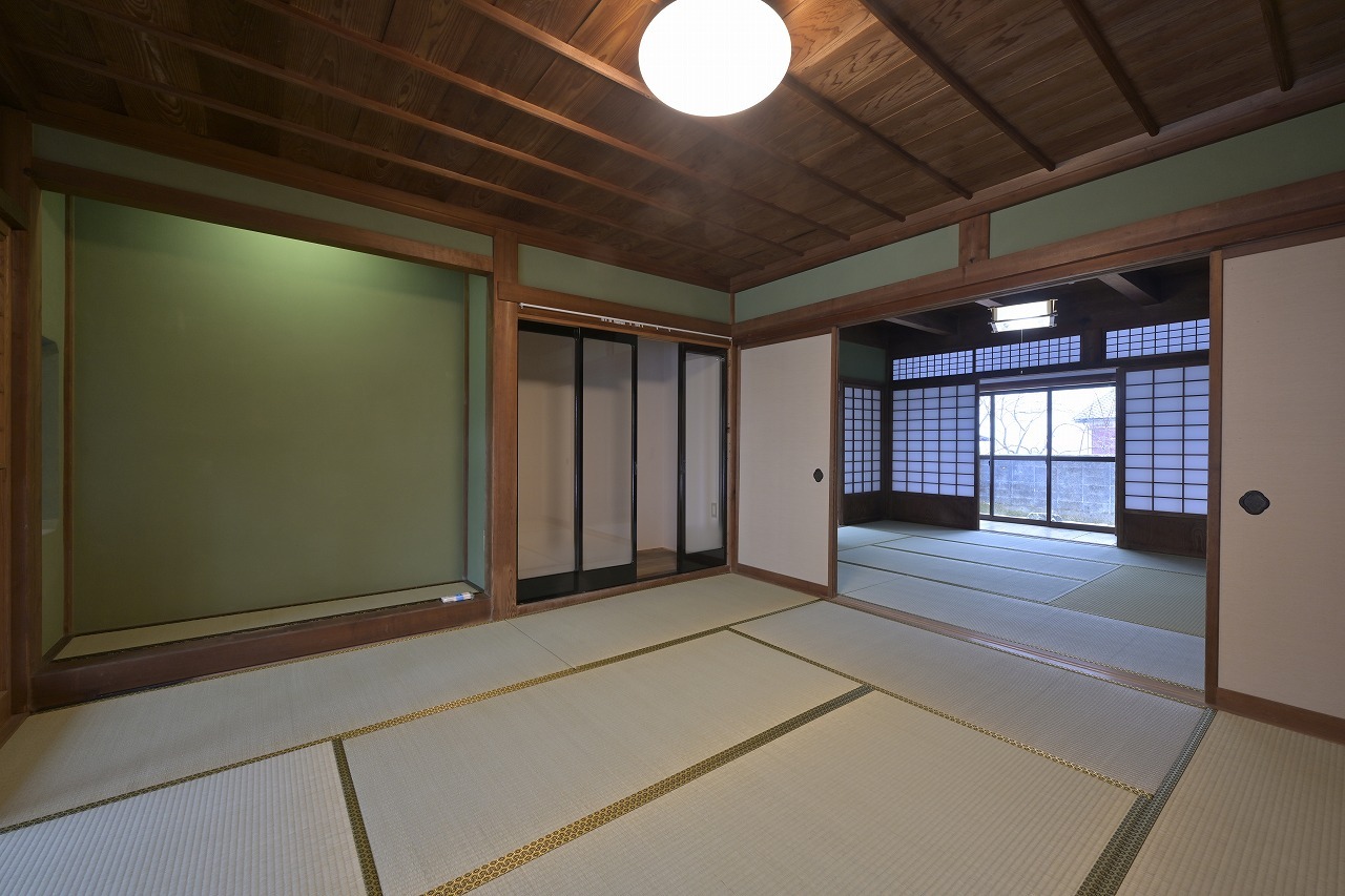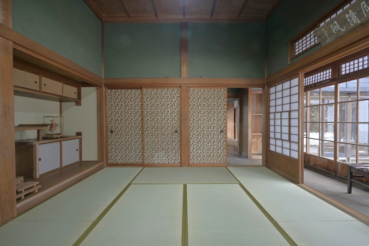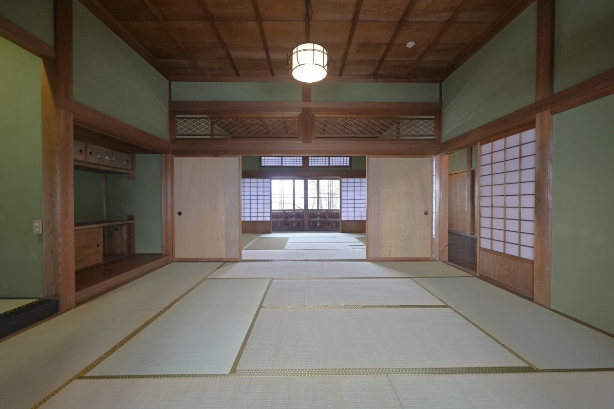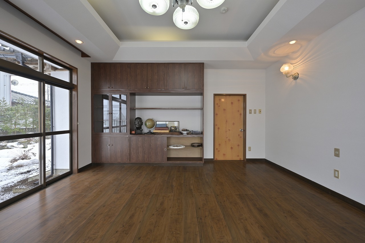 Sanjo City, in central Niigata Prefecture, is a leading metal processing hub alongside neighboring Tsubame City, with suburbs known for fertile fields and delicious local produce. This fully renovated Kominka, including the main house, detached structures, and Kura storehouses, sits at the edge of the Tsuruda settlement, offering a serene yet convenient setting. The property includes multiple Kura and a reservoir, suggesting it may have belonged to a prominent local family. Buildings are spread across a large plot and connected by covered walkways, allowing easy movement in any weather, while the Kura are enclosed by separate walls for preservation. One storehouse has been transformed into a spacious Western-style room with high ceilings, ideal for a dance or music studio thanks to its thick walls. The property is close to Sanjo city center and just 40 minutes from Niigata Shinkansen Station.